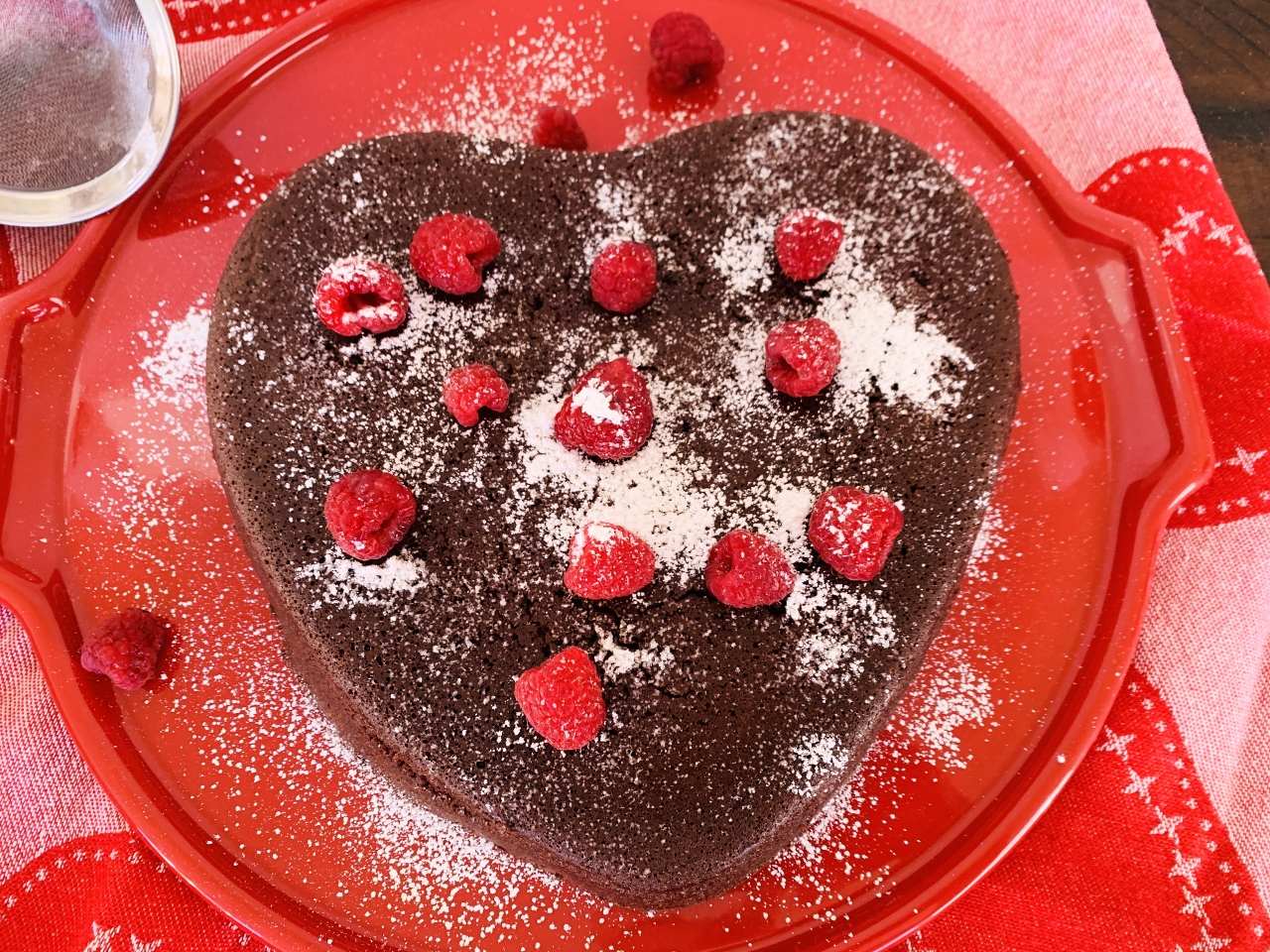Valentine’s Day is just around the corner, and whether you have plans to share it with someone super special or not, chocolate is definitely a necessity on that day. Making a chocolate cake is something that can get a little tricky for some, especially if it’s a layer-cake situation. However, this simple Flourless Chocolate Cake recipe has very few ingredients, and it’s made in one-bowl, and baked in one-pan. I went with a heart-shaped dish, but you can always bake it in a standard cake pan, or Springform pan with great results.