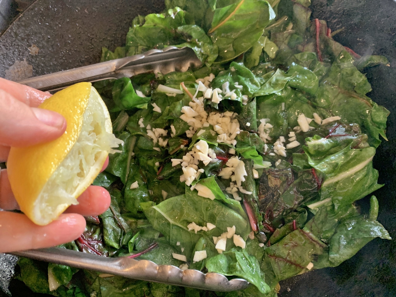 - Continue to cook vegetables for 2 minutes. Squeeze lemon juice over top and season with salt and drizzle with more olive oil. Enjoy!