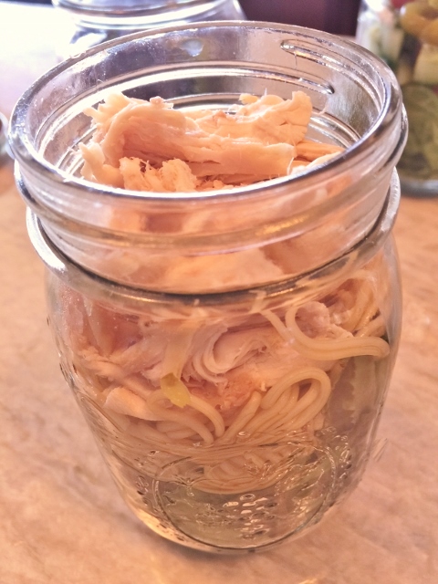 1. Wash and dry four Mason Jars. Shred chicken breasts and drain tuna.