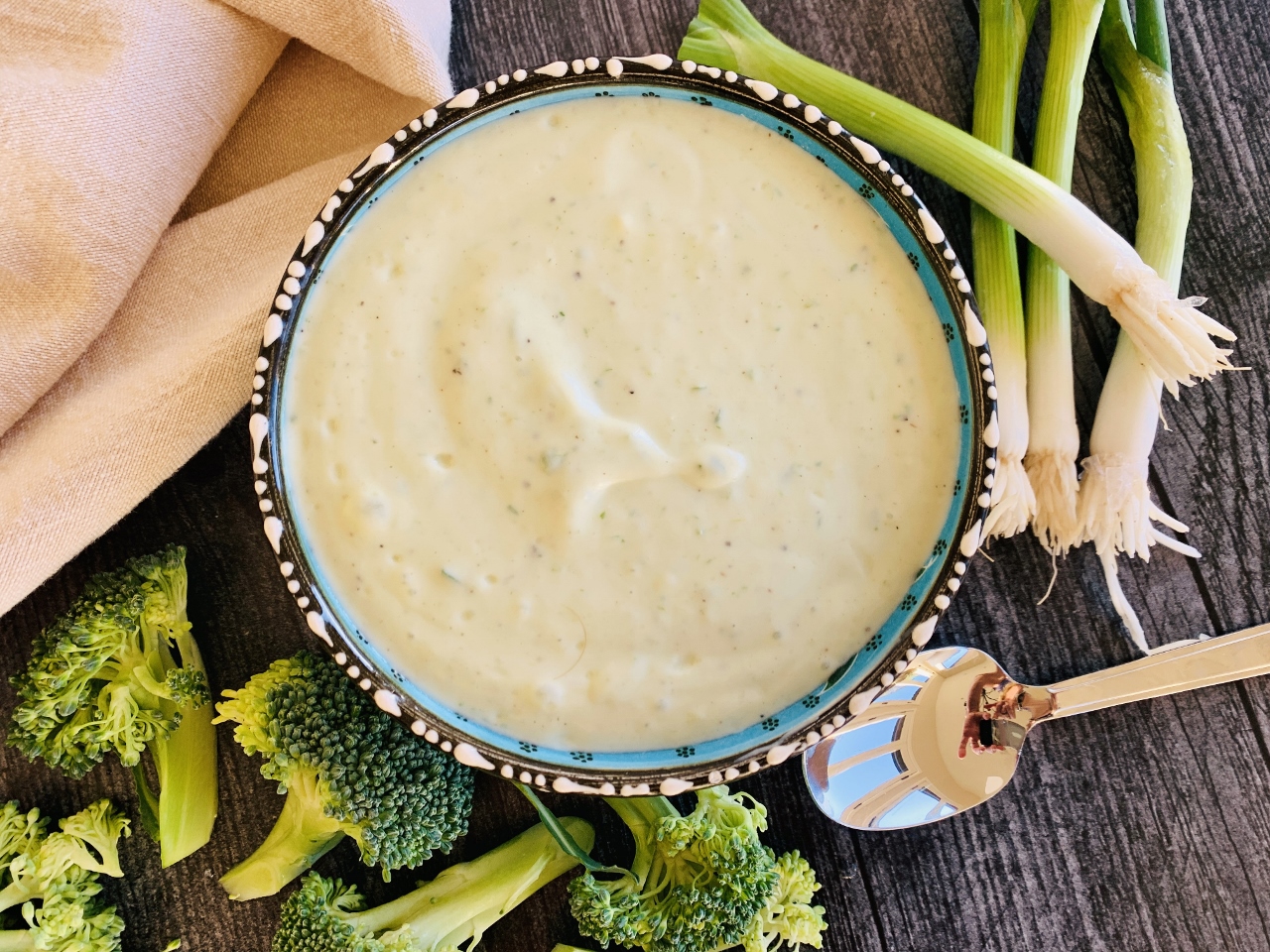 Scallions or green onions, are an easy find at the grocery store or farmer’s market, and they seem to be plentiful this spring.  Pureeing them into a creamy combination using light mayonnaise and yogurt as the base, brings simplistic flavors alive.  I think it’s freshness is a real standout, and makes one of the quickest side kicks for vegetables, chips and even hot wings.  This light green hued dip shouldn’t be missed because it’s a real crowd pleaser and a quick-fix appetizer.