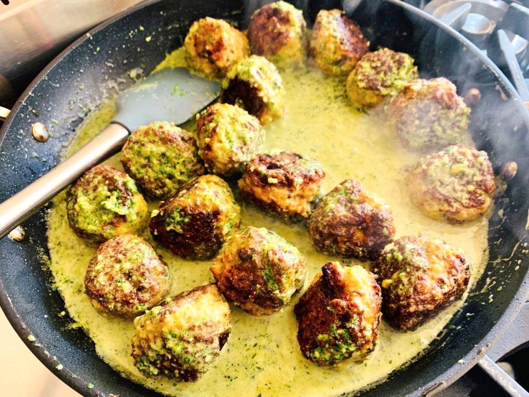 Turkey Meatballs with Creamy Arugula Pesto Sauce – Recipe!