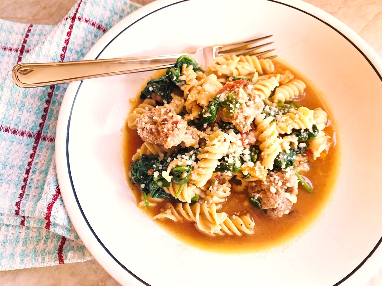 Quick Turkey Meatball Pasta with Tomatoes & Spinach – Recipe!