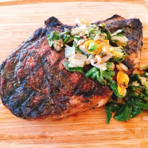 Grilled Double-Thick Ribeye with Padron Pepper Relish – Recipe!