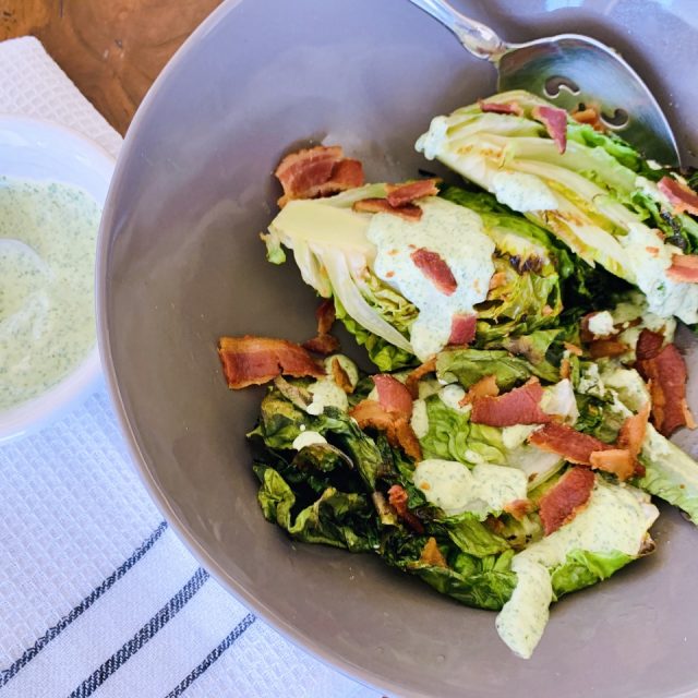 Grilled Gem Lettuce Salad with Green Goddess & Bacon – Recipe!!