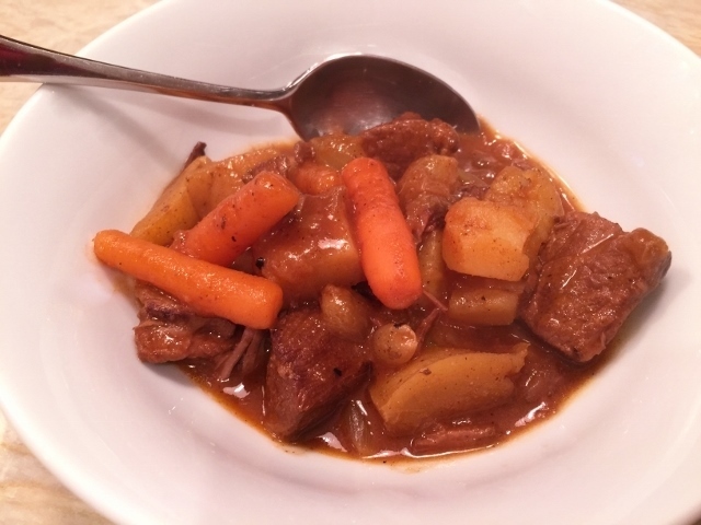 Thursday – Sometimes a good classic recipe is the best, and my beef stew made in a slow-cooker is just that, divine.  Hardy chunks of meat cook down into a gravy-like sauce with potatoes and carrots by their side.