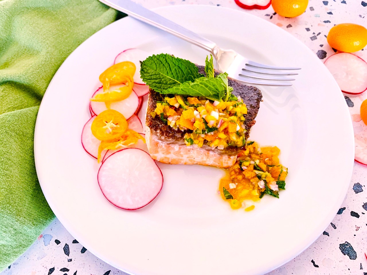 Crispy Skinned Salmon with Agrodolce Kumquat Compote – Recipe!