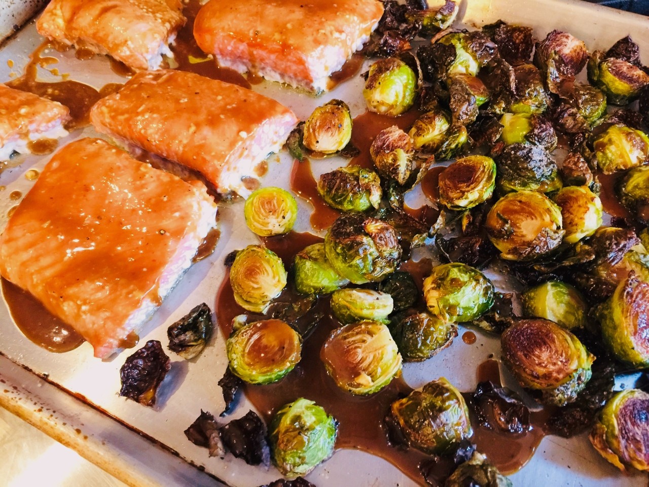 Sheet Pan Honey Mustard Salmon & Brussels Sprouts – Recipe!