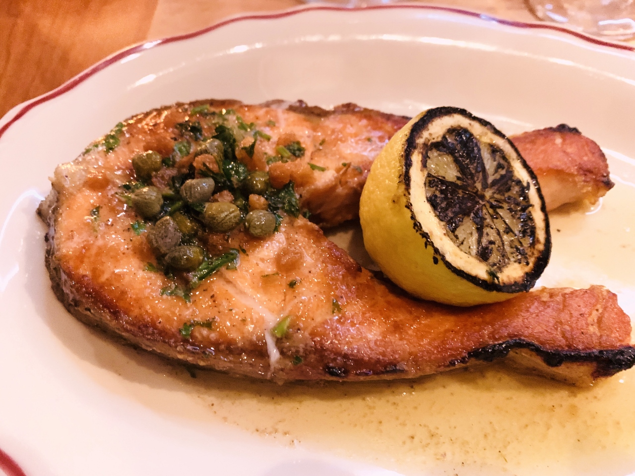 The other list of Bigger fare besides steaks, were the Steakhouse Burger with Swiss and Grilled Onions, reminiscent of a Patty Melt from Hamburger Hamlet back in the day, and a Sea Trout Steak with Grilled Lemon and Capers. Both entrees prove to be worthy of a Steakhouse Menu and add volumes to its personality.