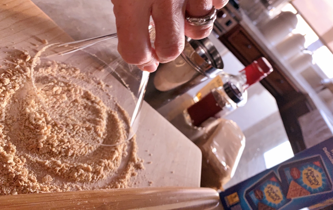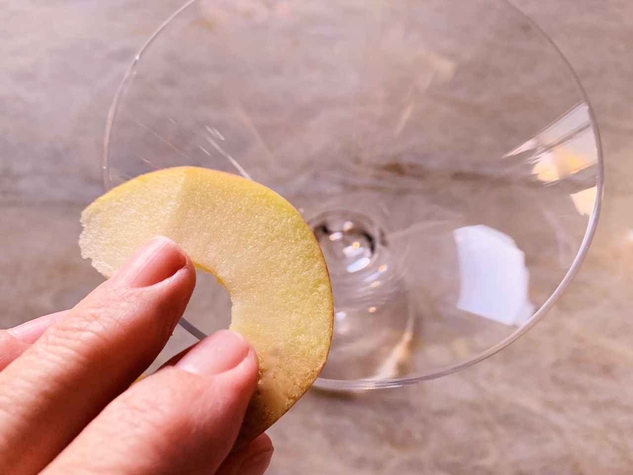 - Rub each rim with an apple slice and press into crumbs, set aside.