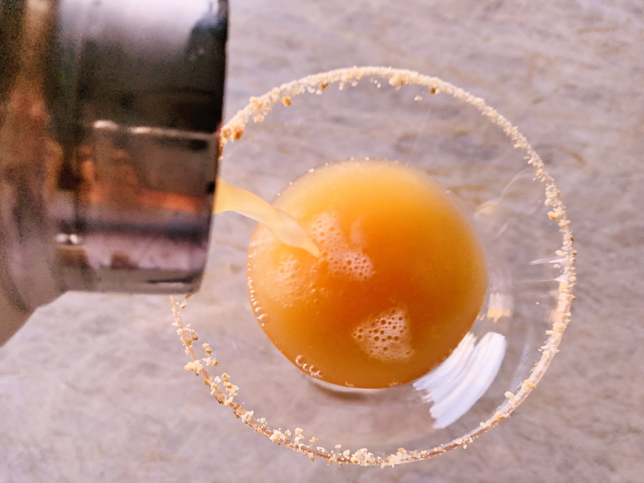 Unfiltered apple juice is what I recommend to give this drink the right amount of apple flavor without it tasting too sweet. The murky tan color is ripe for the season and makes the apple slice pop on top. Cinnamon and apples are just meant to be together, like Sonny & Cher on television every Friday night, when I was a kid. The balance is beautiful in this drink, a perfect sipper to enjoy with loved ones around you.