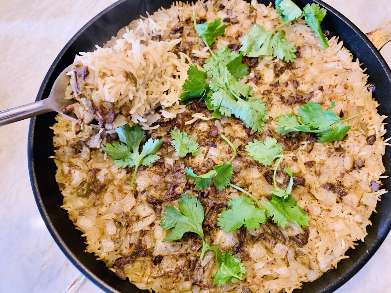 You can spoon the rice alongside a piece of grilled fish or chicken, and the leftovers are a quick reheat in the microwave for lunch.  The aroma that comes off the pan after removing it from the oven is something splendid, and reminiscent of a great trip somewhere in the Mediterranean.