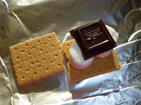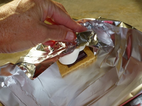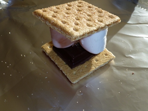 2.  Wrap the foil around each s’more and set aside until they are all assembled.