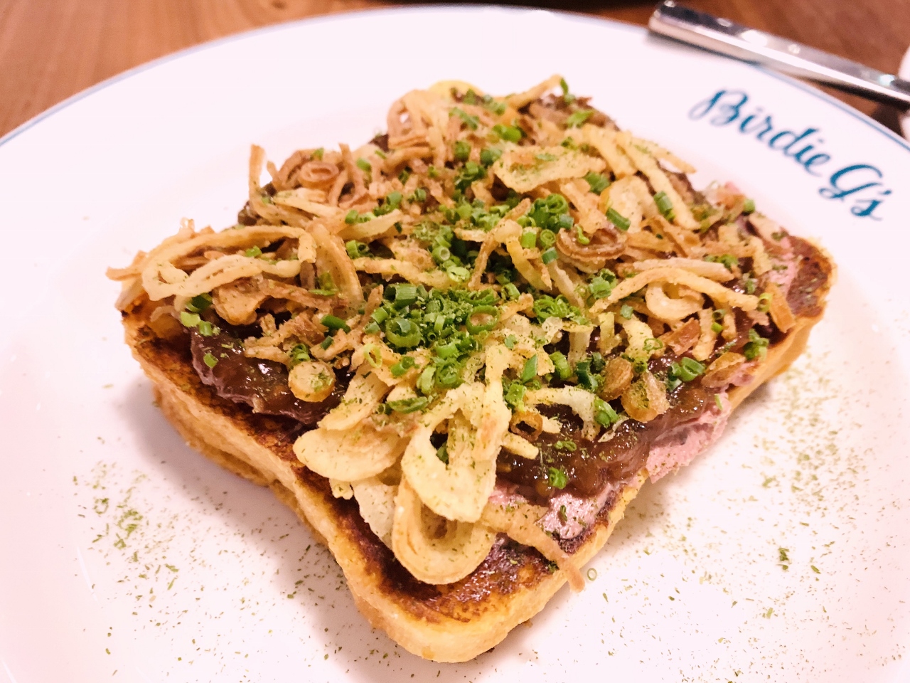 The offerings are vast at Birdie G’s with cause to come back on several occasions. The Almond Pesto Olives and Lavender Almonds are nice for munching on while enjoying your drinks.  However, the German Potato Salad with Smoked Mushrooms, Poached Chicken, Egg and Avocado was definitely a nice start and not to be missed, even on your first and second visits.