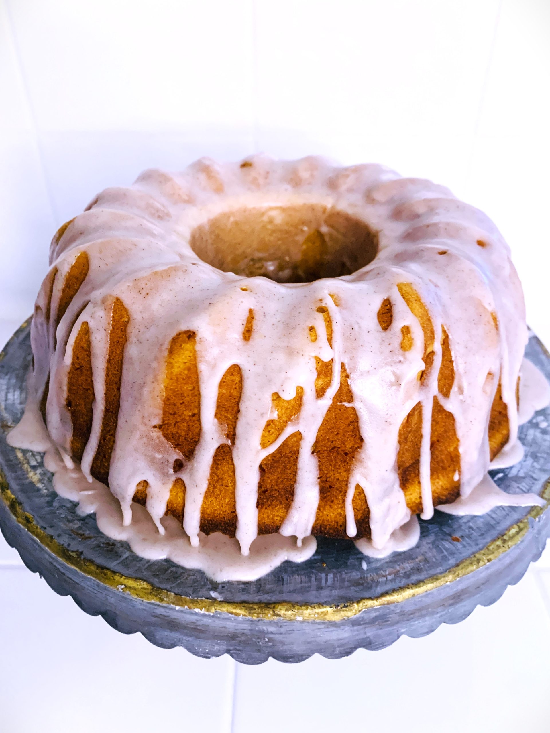 - Remove cake from pan and invert onto cake stand or platter. Drizzle with icing. Slice and serve or let it set in refrigerator and serve later. Enjoy!