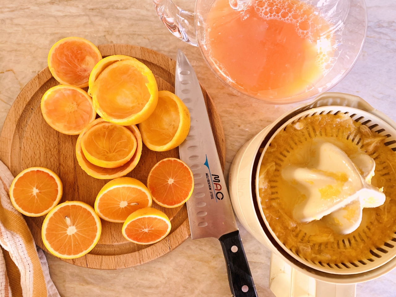 If you don’t grow your own fruit, just head to the local farmer’s market or grocery store. I’m sure they are in the same situation as me, and have tons of citrus. Blood oranges are a precarious fruit. Some years they have intense striated deep red and orange colors, while on other years, they look more like a grapefruit on the inside. It doesn’t matter to me what color they are because the taste is killer no matter the color. Blood oranges are fruity and tangy, yet sweet, but not in a punchy way. They make the best cocktails or mocktails on planet earth, and I highly recommend grabbing a few and mixing up a batch of these drinks this weekend.