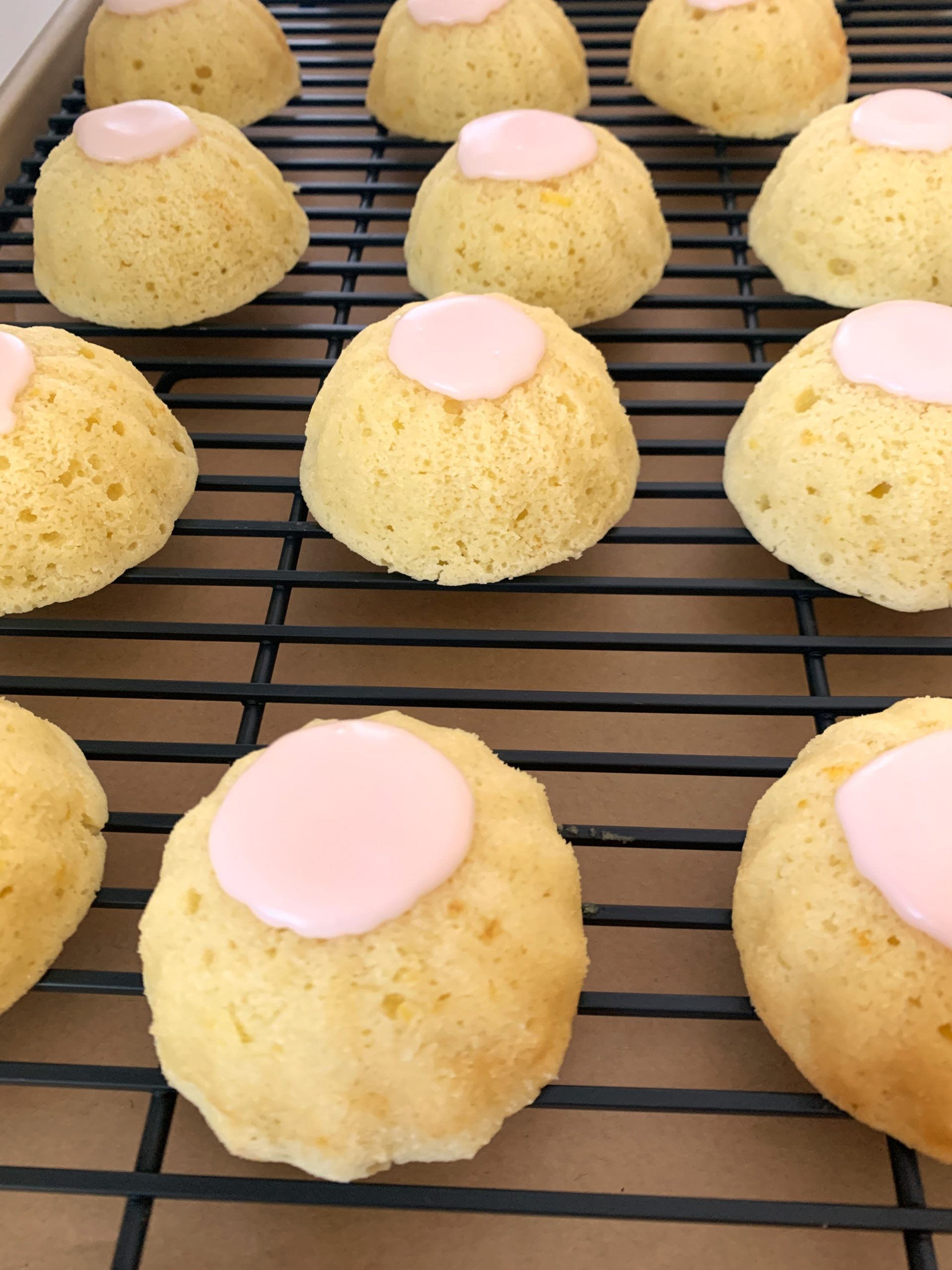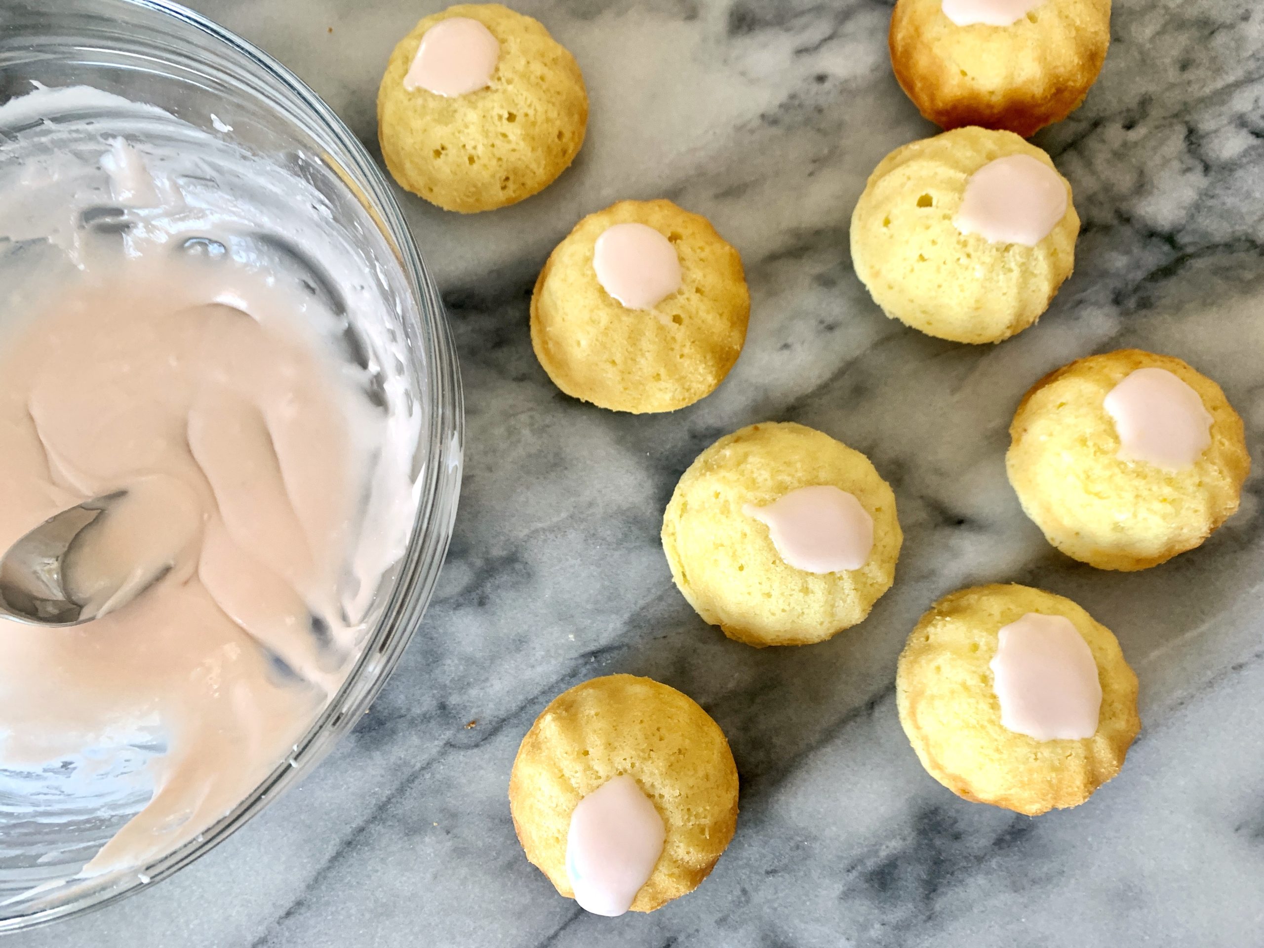 Olive oil is the fat in these mini-bundts and you can taste the earthy notes in each bite. A simple glaze that’s pink in color because of the blood orange juice makes them that much more fun. I think they would make a great dessert for Easter or any springtime gathering. You can bake the cake in a standard Bundt pan, just increase baking time to 50-60 minutes.