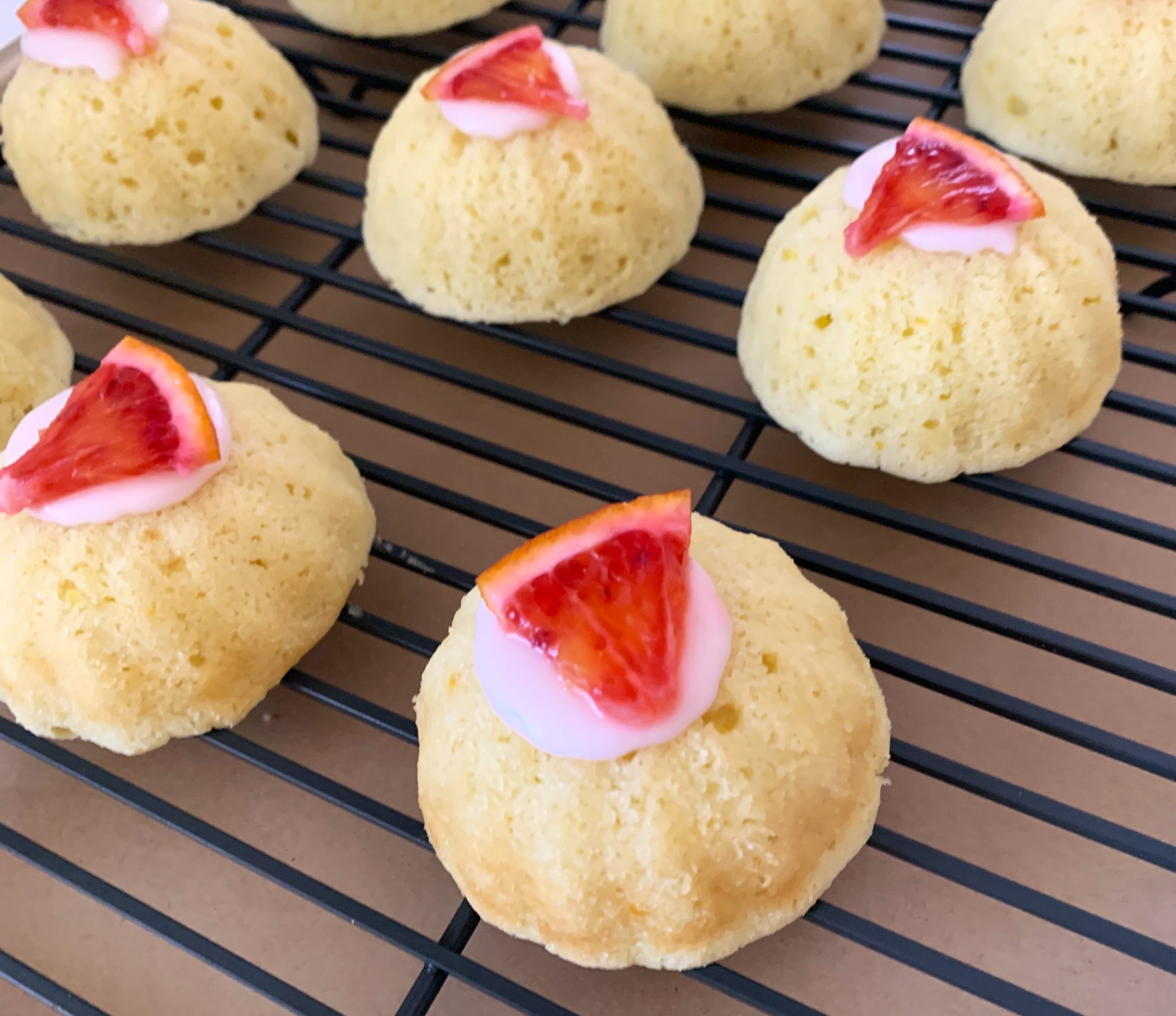 - Mix glaze ingredients in a bowl until creamy. Dollop a spoonful of glaze over top and place a blood orange triangle on top, if desired. Enjoy!