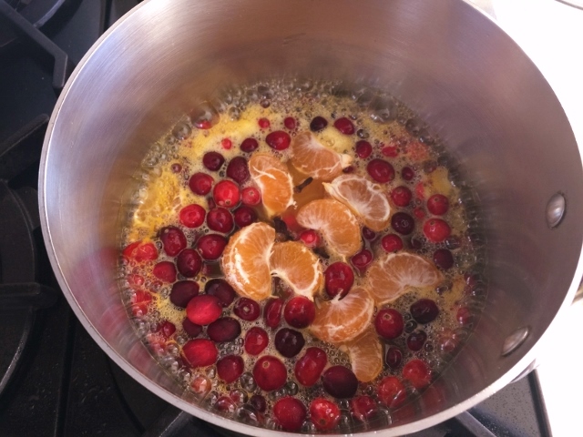 Cranberry Sauce is a simple preparation in one pot, and adding a few additional ingredients like sweet citrus essence from a tangerine, and a little Cointreau creates wonderful adult-like flavor and changes the game on cranberries. The combination of cranberries and oranges go nicely together because the tangerine mellows out the tangy cranberry taste.