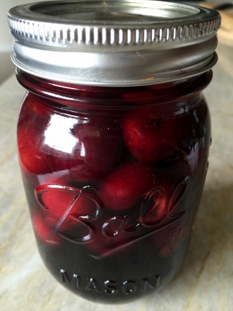 6.  When room temperature, place the lid on the jar and refrigerate for 2 weeks.  The cherries can be used at this point and will store in the refrigerator for up to 6 months.  Enjoy!