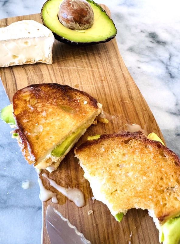 Avocado has a natural buttery taste, yet has flavors of a fruit – slightly sweet, while creamy brie is soft and earthy. This combination when griddled in a skillet melds beautifully together and becomes an amazing sandwich.