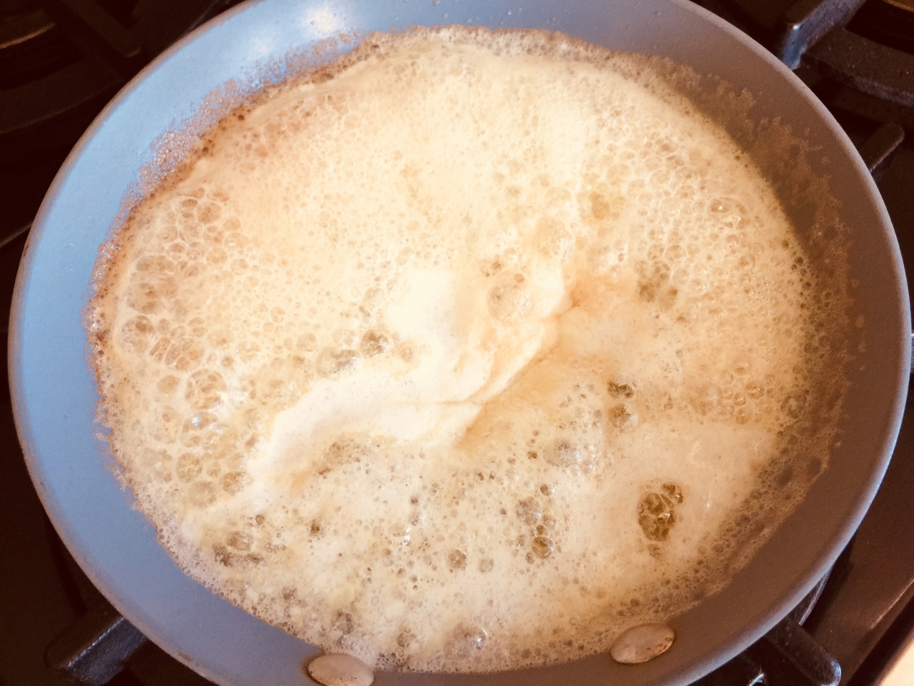 4. On the stove top, place butter into a skillet and set over medium heat, watch butter melt and brown to a golden tan color, about 5 minutes. Remove from heat and cool in pan.