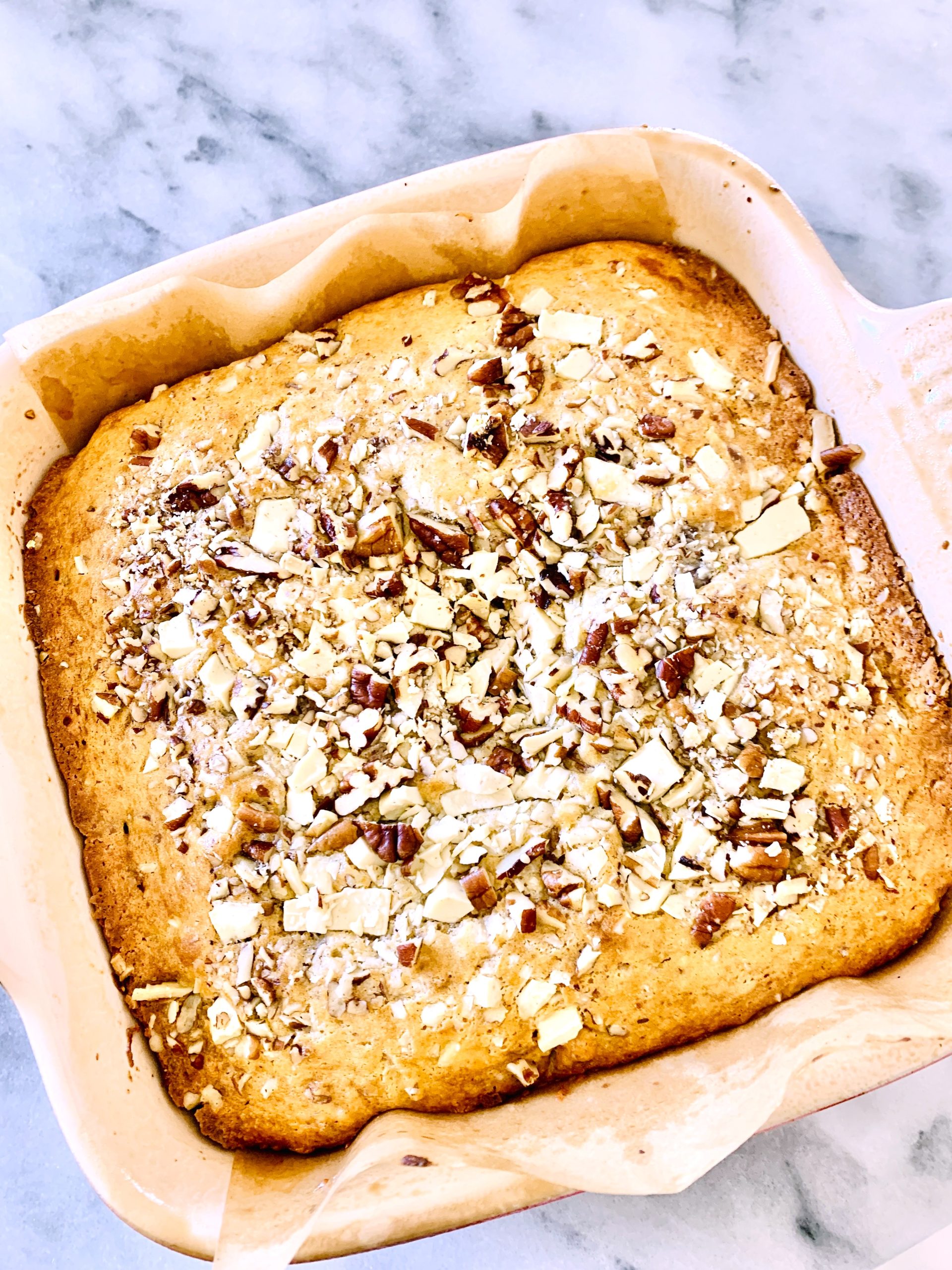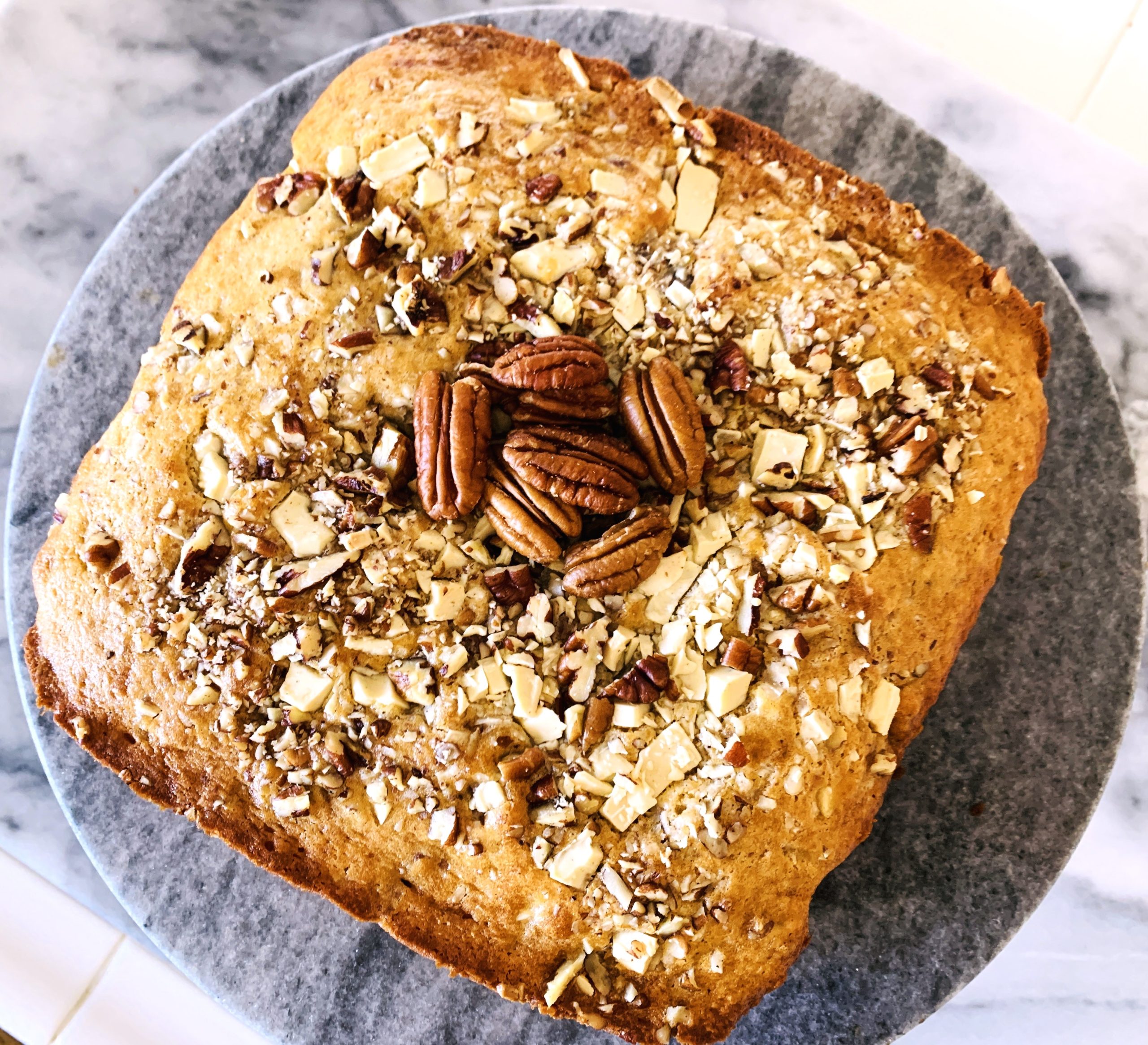 Browned Butter, White Chocolate, Pecan Snack Cake – Recipe!