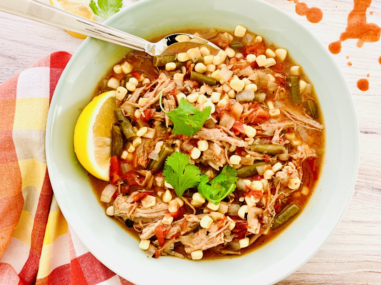 Brunswick Stew is a popular dish in southern cuisine, but it’s origin is unknown. There are two counties in the south, one in Virginia and one in Georgia that claim it originated there, but it has not been verified. What attracted me to this recipe, is that it’s mostly made up of leftovers, or items you may already have in your refrigerator. Nowadays, you can find cooked meat at the grocery store, if you don’t currently have any on hand, but traditionally this pot of stew is made with scraps of vegetables, fresh or frozen, and roasted meat like chicken, beef or pork. Since, you may have some of those pork roast leftovers from last weekend’s recipe, or have a cup or two of shredded roast chicken from a meal this week, it’s the perfect time to prepare this meal.