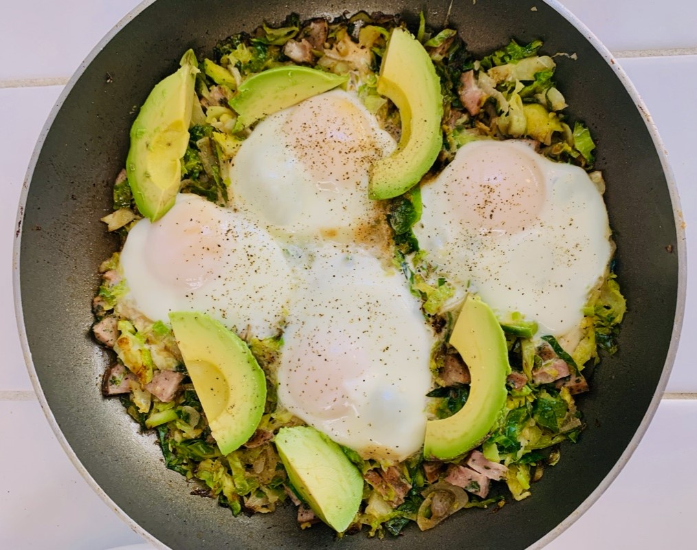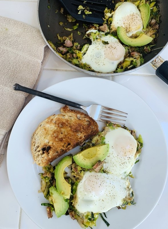 A good skillet and you’re off to the races with this hash recipe. Freshly sliced Brussels sprouts and a shallot sauteed in a hot pan are the base of this dish, however sliced chicken sausage adds protein, and another layer of flavor to create a hardier meal that really satisfies hunger.