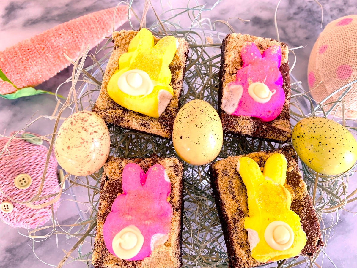 Peeps are one of those Easter candies that you just can’t resist during the season. These sugar coated marshmallows are crazy-colored and shaped into bunnies, birds and rabbits and happen to be one of my favorite things in an Easter basket. They are made to be overly sweet and when you bite into one, the intense sugar coating leads to a fluffy soft center — that’s what’s so amusing about them. So, this year I thought I would make a rich chocolate brownie recipe that included Peeps for some Easter fun.