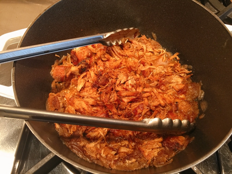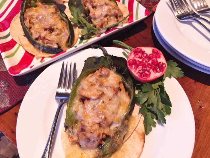 After reflecting about that meal for days, I decided to create my own version of Carnitas Stuffed Poblanos and share it with you to make on Christmas Eve, or another date. The pork is a simple preparation and you can do it on your stove top or cut down the cooking time and use the Instant Pot! Then, a quick char of poblano peppers and fill with meat and cheese.