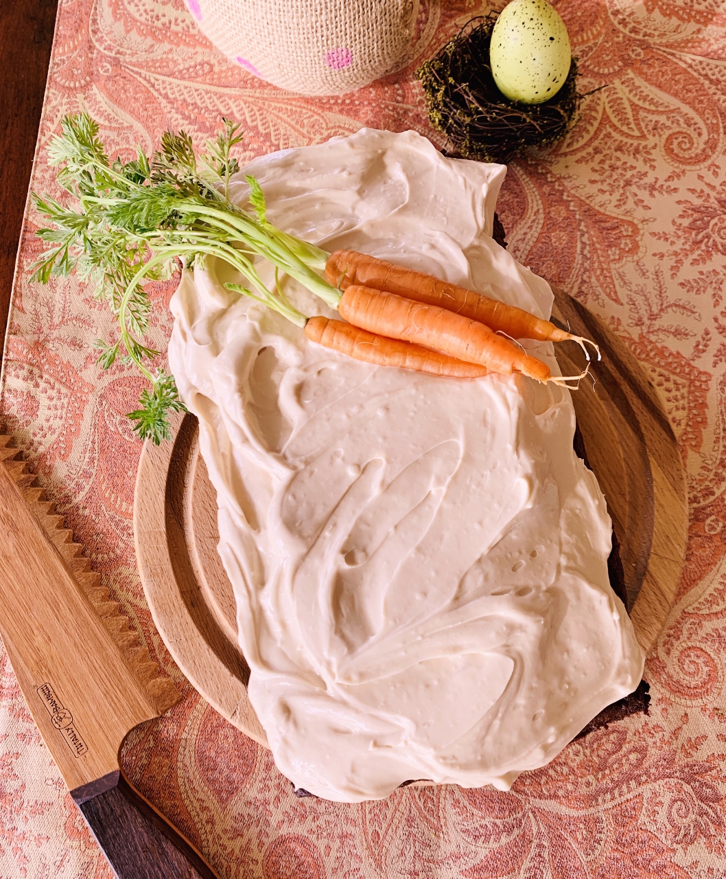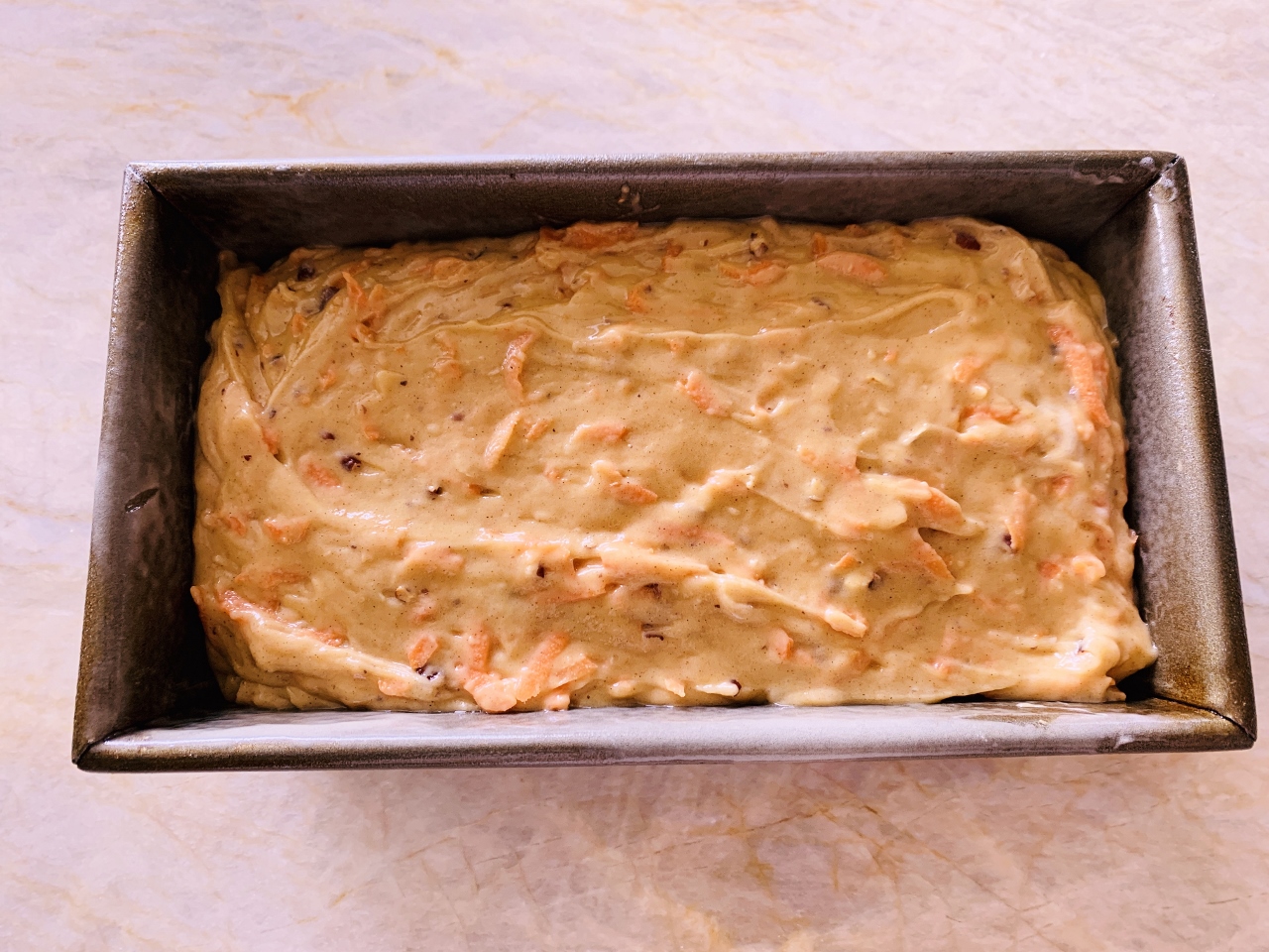 Easter is on Sunday and most of us, as we should be, are still in isolation at home, either alone or with our immediate family. That being said, there is still room for celebration whether it be just a few of you, or by yourself. Cake seems to lift our spirits and bring out the love in all of us, and at Eastertime, Carrot Cake seems to be a favorite. Baking a multi-layered cake maybe overkill in a small gathering, so I went with a loaf cake because it’s smaller in size, easier to make, and it will last a few days in the refrigerator to slice and enjoy on the days that follow.