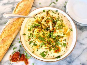 Food Appetizers Live Whole Grains White Bean Hummus with Smoky Marinated Artichoke Hearts Recipe April 7, 2025 / November 23, 2025 by Gena Bell | Leave a Comment Creamy White Bean Hummus topped with tangy marinated artichoke hearts makes the perfect appetizer or healthy snack—easy, delicious, and packed with flavor White beans, tahini paste, a clove of garlic and a squeeze of lemon round out the ingredients in this White Bean Hummus with Smoky Marinated Artichoke Hearts Recipe and it’s all pureed until […] Read more » genabellrecipes Hummus Recipe No Cook Recipes Summertime Recipes White Bean Hummus Recipe White Bean Hummus with Smoky Marinated Artichokes - Recipe! Whole Grain Recipes