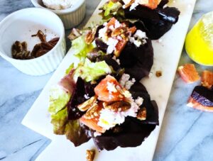Food Appetizers Live Salads Roasted Beet and Cara Cara Orange Salad Cups Recipe July 18, 2025 / November 23, 2025 by Gena Bell | Leave a Comment Brighten up your table with Roasted Beet and Cara Cara Orange Salad Cups—a vibrant, citrusy appetizer or side dish perfect for any season. I always love a good salad and these Roasted Beet and Cara Cara Orange Salad Cups make salad night that much more delicious. As we all enjoy a good lettuce wrap, salad […] Read more » Beet Recipes Cara Cara Oranges cooking with Gena Bell genabellrecipes Roasted Beet and Cara Cara Orange Salad Cups - Recipe! Salad Cups Salads