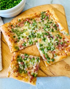 Food Appetizers Easy Cheesy Pancetta and Pea Puff Pastry Tart Recipe May 15, 2025 / November 23, 2025 by Gena Bell | Leave a Comment Try this Easy Cheesy Pancetta and Pea Puff Pastry Tart – a simple, savory tart recipe loaded with crispy Pancetta, melty cheese, and peas. If you’re looking for a delicious and low-effort dish, this Easy Cheesy Pancetta and Pea Puff Pastry Tart is the answer. With just a handful of ingredients, you can create a […] Read more » Baking with Gena Bell Easy Cheesy Pancetta and Pea Puff Pastry Tart Recipe Easy Tart Recipes genabellrecipes Puff Pastry Tart Recipe Savory Tart Recipe