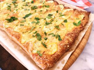 Food Appetizers Patty Pan Squash and Gruyere Tart – Recipe! September 11, 2024 / November 23, 2025 by Gena Bell | 3 Comments on Patty Pan Squash and Gruyere Tart – Recipe! This Sheet Pan Patty Pan Squash and Gruyere Tart is simple to make and it’s a beautiful way to use up the last of the summer squash. Patty Pan Squash look like a flower blossom from the top and have a slight bulbous bottom. The colors are amazingly brilliant with splashes of yellow and green […] Read more » Baking with Gena Bell Cheesy Squash Tart Recipe genabellrecipes Patty Pan Squash & Gruyere Tart - Recipe! Puff Pastry Recipes Squash Tart Recipe Summer Squash Recipes