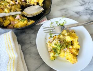 Food Breakfast Cornbread and Ham Stovetop Strata – Recipe! May 7, 2024 / November 23, 2025 by Gena Bell | Leave a Comment Whether it’s a weekday and you’re trying to prepare something quick and delicious for breakfast or a longer brunch on the weekend, my Cornbread and Ham Stovetop Strata will surely please everyone. What makes this strata slightly different from a classic strata is that you prepare the whole thing on the stovetop — no need […] Read more » Breakfast Brunch Recipes cooking with Gena Bell Cornbread and Ham Stovetop Strata - Recipe! Easy Breakfast Ideas genabellrecipes Mother's Day Recipes! Strata Recipe