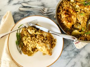Food Main Courses Braised Chicken with Artichokes and Israeli Couscous – Recipe! May 6, 2025 / November 23, 2025 by Gena Bell | Leave a Comment Slow-Braised Chicken, tender Artichokes, and nutty Israeli Couscous—this rustic dish is pure comfort in a bowl — It’s one of those recipes. A simple dinner of Braised Chicken with Artichokes and Israeli Couscous is not only satisfying, it’s easy to put together in minutes. Mealtime does need to be delicious and I think we look […] Read more » Braised Chicken Recipe Braised Chicken with Artichokes and Israeli Couscous - Recipe! Chicken Recipes cooking with Gena Bell genabellrecipes One Pan Meal Skillet Chicken Recipes