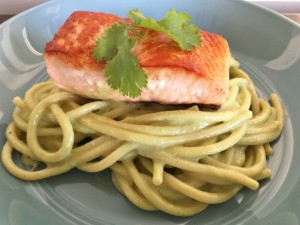 Family Style Food Laugh Main Courses Avocado & Cilantro Pesto Bucatini with Seared Salmon – Recipe! May 12, 2016 / November 23, 2025 by Gena Bell | 1 Comment on Avocado & Cilantro Pesto Bucatini with Seared Salmon – Recipe! Being born and raised in Southern California, we always had an abundant supply of avocados because of our climate and so, avocados have been a large part of my diet. Avocados are a healthy fat with a richness that is a little more delicate to the waistline, while adding creamy flavor. Traditionally avocados are […] Read more » Avocado & Cilantro Pesto Bucatini with Seared Salmon - Recipe! Avocado Pesto Recipe Best Pasta Recipes Bucatini Recipes cooking with Gena Bell salmon recipes