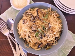 Food Family Style Laugh Main Courses Roasted Eggplant Carbonara – Recipe! April 22, 2024 / November 23, 2025 by Gena Bell | Leave a Comment Monday’s are the perfect day for making an easy meal that is both comforting and tasty like my Roasted Eggplant Carbonara. Eggplant adds healthy umami flavors to any dish and it often mimics the taste of meat, giving it a savory taste. Chinese Eggplant is less bitter than the larger varieties and it is terrific, […] Read more » Carbonara Recipe cooking with Gena Bell Eggplant Recipes genabellrecipes How to Make Carbonara Roasted Eggplant Carbonara Roasted Eggplant Carbonara - Recipe! Vegetarian Pasta