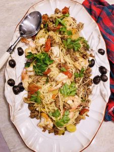 Food Family Style Laugh Main Courses Chorizo and Shrimp Angel Hair Pasta – Recipe! April 18, 2024 / November 23, 2025 by Gena Bell | Leave a Comment Classic chorizo sausage from Spain is traditionally smoked and cured pork that is used in a variety of dishes. However, Mexican or raw chorizo is mixed with chilies and spices that pack flavor, which makes this Chorizo and Shrimp Angel Hair Pasta so tasty. Fresh chorizo can come in a variety of styles. There are […] Read more » Chorizo & Shrimp Angel Hair Pasta - Recipe! Chorizo & Shrimp Pasta Recipe cooking with Gena Bell Family Style Recipes genabellrecipes Pasta Recipes