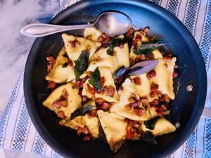 Food Family Style Laugh Main Courses Cheese Ravioli with Brown Butter, Pancetta and Fried Sage – Recipe! May 23, 2023 / November 23, 2025 by Gena Bell | Leave a Comment Cheese Ravioli with Brown Butter, Pancetta and Fried Sage is a delightfully simple recipe made with store-bought ingredients with cheesy, buttery and nutty notes. Artisan and store brands offer so many great options to good tasting ravioli. The trick to making these ravioli taste like you are dining at a local trattoria happens with a […] Read more » Cheese Ravioli with Brown Butter cooking with Gena Bell genabellrecipes Italian Food Recipes Pancetta & Crispy Sage - Recipe! Ravioli Recipes Store-bought Cheese Ravioli Recipes