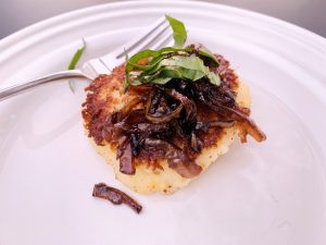 Food Appetizers Laugh Leftovers Potato Pancakes with Balsamic Onions and Basil – Recipe! December 29, 2023 / November 23, 2025 by Gena Bell | Leave a Comment Crispy, creamy with a sweet and savory topping — Potato Pancakes with Balsamic Onions are a delightful appetizer, and these start with mashed potatoes. Mashed potatoes are made in various ways, but mine tend to be fairly easy because I make them with boiled potatoes and add butter, milk or cream, sometimes sour cream, salt […] Read more » Appetizers Balsamic Onions cooking with Gena Bell Potato Pancakes Recipe Potato Pancakes with Balsamic Onions and Basil - Recipe!