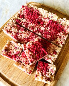 Food Desserts Gluten-Free Live Raspberry Rice Krispie Treats – Recipe! January 14, 2023 / November 23, 2025 by Gena Bell | Leave a Comment Snap, crackle, pop commercials were part of my upbringing, and I can’t tell you how many rice krispie treats I’ve made over the years, and I still enjoy them immensely. Raspberry Rice Krispie Treats are my newest recipe that’s super colorful with a raspberry kick that will bring an immediate smile to your face. Freeze […] Read more » cooking with Gena Bell Desserts Easy No-Bake Desserts Freeze Dried Raspberry Desserts genabellrecipes Raspberry Desserts Raspberry Rice Krispie Treats - Recipe! Rice Krispie Treat Recipes