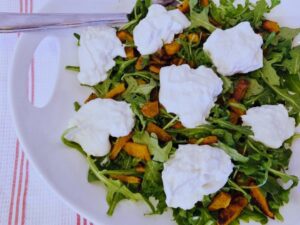 Food Salads Roasted Butternut Squash and Arugula Salad with Burrata – Recipe! November 1, 2023 / November 23, 2025 by Gena Bell | Leave a Comment The weather here in Southern California is heating up again today, unlike the rest of the country that’s experiencing snow. This Roasted Butternut Squash and Arugula Salad with Burrata is super hardy and so tasty, no matter where you are in the country. Butternut squash is one of those vegetables you can buy whole, or […] Read more » Burrata Salad Recipes cooking with Gena Bell Fall Salad Recipes genabellrecipes Roasted Butternut Squash & Arugula Salad with Burrata - Recipe! Roasted Butternut Squash Salad Recipe