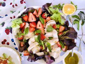 Live Salads Poached Chicken Salad with Strawberries and Honey Poppy Seed Vinaigrette – Recipe! May 4, 2023 / November 23, 2025 by Gena Bell | Leave a Comment A Poached Chicken Salad with Strawberries and Honey Poppy Seed Vinaigrette makes a delightful meal in minutes and a nice idea to prepare for mom on Mother’s Day. Poaching chicken is not a difficult task. Adding chicken breasts to a skillet, along with some cold water and a few aromatics like lemon, onion and fresh […] Read more » cooking with Gena Bell genabellrecipes Honey Poppy Seed Vinaigrette Poached Chicken Salad Recipe Poached Chicken Salad with Strawberries & Honey Poppy Seed Vinaigrette - Recipe! Salads Spring Salads