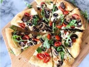 Food Breads and Buns Love Main Courses Easy Summertime Pizza – Recipe! September 16, 2024 / November 23, 2025 by Gena Bell | Leave a Comment An Easy Summertime Pizza topped with fresh mushrooms, cherry tomatoes and creamy mozzarella is a quick and tasty meal for any weeknight. Everyone loves a good pizza, and during summer when produce is especially nice, it’s a fantastic idea to stretch a round of dough into a pizza and top it with your favorite things. […] Read more » cooking with Gena Bell Easy Summertime Pizza - Recipe! genabellrecipes Pizza Pizza Recipe Summer Pizza Recipe Vegetarian Pizza Recipes