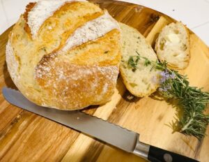 Love Breads and Buns Rosemary Bread – Recipe! April 20, 2024 / November 23, 2025 by Gena Bell | Leave a Comment Baking bread is something I thoroughly enjoy. It’s very therapeautic forming dough right in your hands and scoring it on top, then placing it in a hot Dutch Oven to bake. This Rosemary Bread is so simple to make and infused with freshly minced rosemary for an aromatic touch that tastes lovely when sliced, and […] Read more » Baking with Gena Bell Bread Bread Recipes genabellrecipes Good Bread Recipes Rosemary Bread - Recipe!