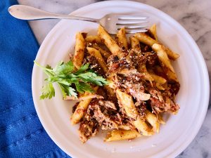 Laugh Favorite Things Leftovers Love Leftover Shredded Pork Penne in Calabrian Chile Tomato Sauce – Recipe! October 27, 2021 / November 23, 2025 by Gena Bell | Leave a Comment I like to share with you an ingredient that I think is worth including in your pantry, and that’s Calabrian chile paste or whole Calabrian chilies in a jar, that you can mince up on your own. These chilies have a unique spicy flavor that’s smoky, mildly pungent and yet sweet. When added to tomato […] Read more » Calabrian Chile Recipes cooking with Gena Bell Favorite Things genabellrecipes Leftover Shredded Pork Penne in Calabrian Chile Tomato Sauce - Recipe! Leftovers Pasta Recipe Pork Recipes