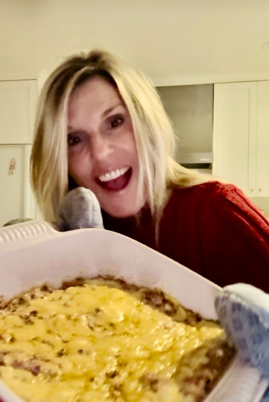 After a few minutes in the oven, it’s warm and gooey — ready for serving. I like tortilla chips with this dip, but corn chips would be delicious as well. Game night should always be packed with laughter and this dip recipe will make it super tasty.