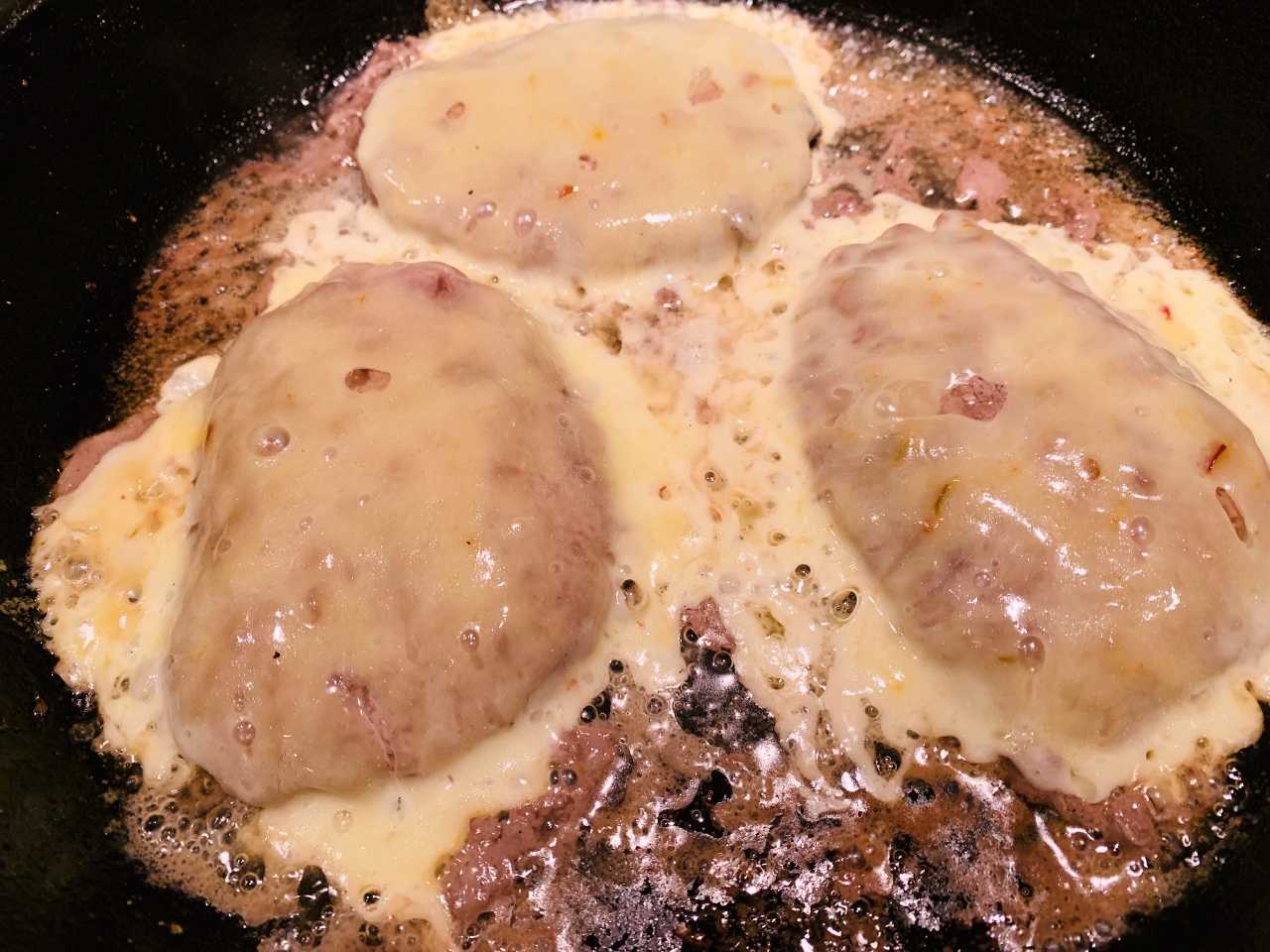 - In a large skillet over medium-high heat add 2 teaspoons oil. Place beef patties in pan and cook for 4 minutes. Flip patties over and place cheese on top. Turn heat to medium and cover with lid. Cook for 3 minutes. Remove lid and turn off heat.